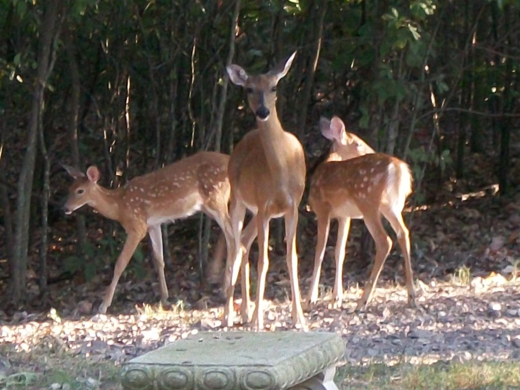 This cabin has a side privacy garden with an umbrella picnic table and a full size bar-b-que grill. We feed the deer about 30 feet from this garden and you get deer 5 or 6 times a day.