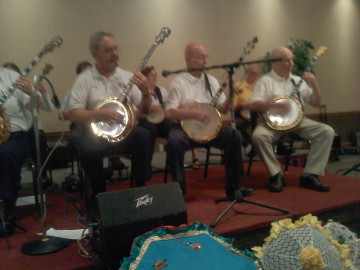 In August, the Wednesday before Labor Day, there will be a Banjo Rally at the Bear Mountain Stables. The Rally is free to all to sit and listen or bring an instrument and join in. This is the sixth year for this event and is a lot of fun. If you want to have dinner while you are there it is an an all you can eat buffet with brisket, baked beans, corn on the cob, potato salad, sliced peaches, bottled water and soda pop for 12.50 a person and you will need a reservation for the dinner. We start around 6:00 P.M. and go until the pickers give out so come have a good time.